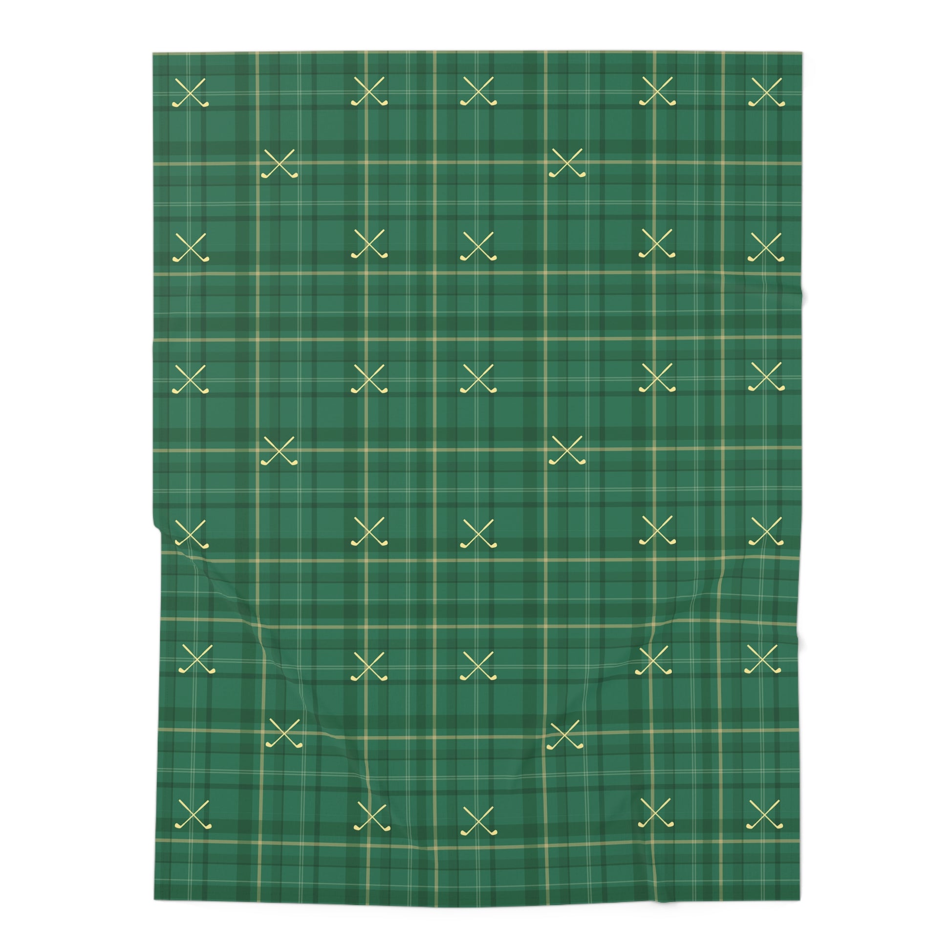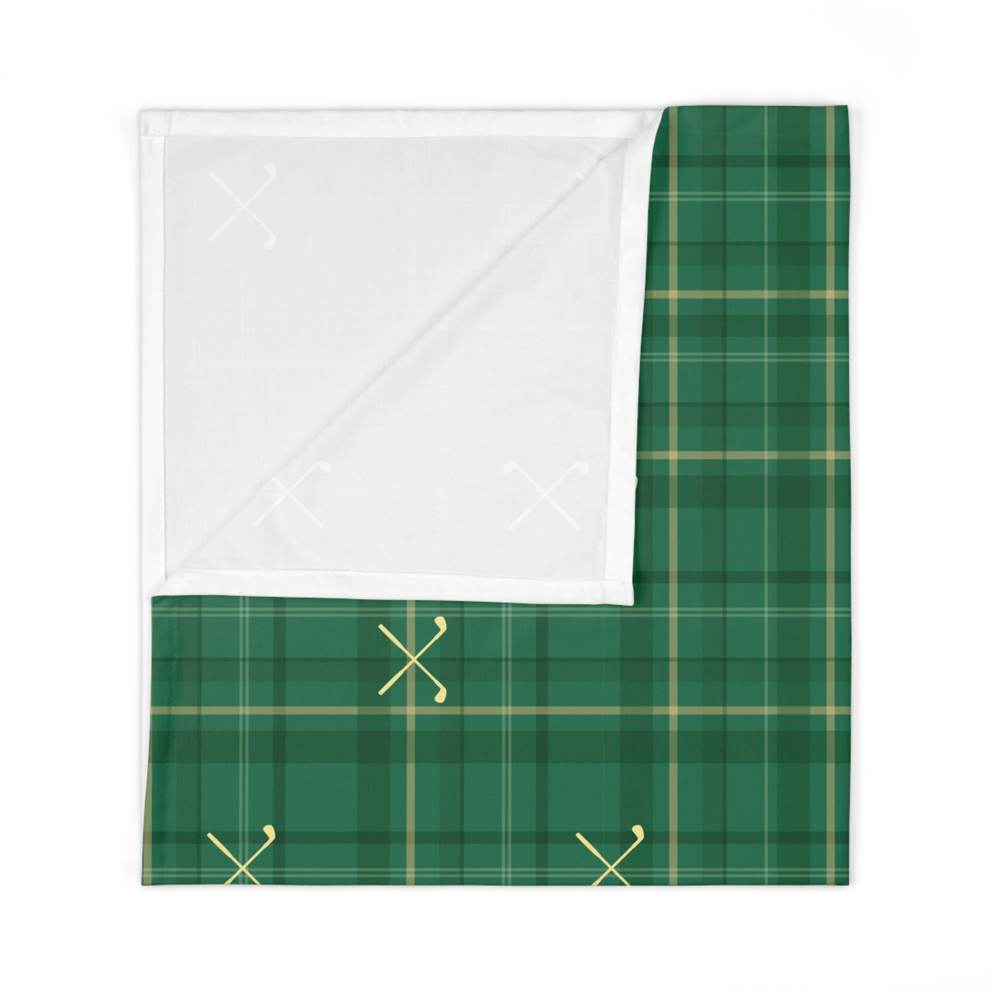 Baby Swaddle Blanket — Green Plaid with Crossed Golf Clubs (Cozy Nursery)