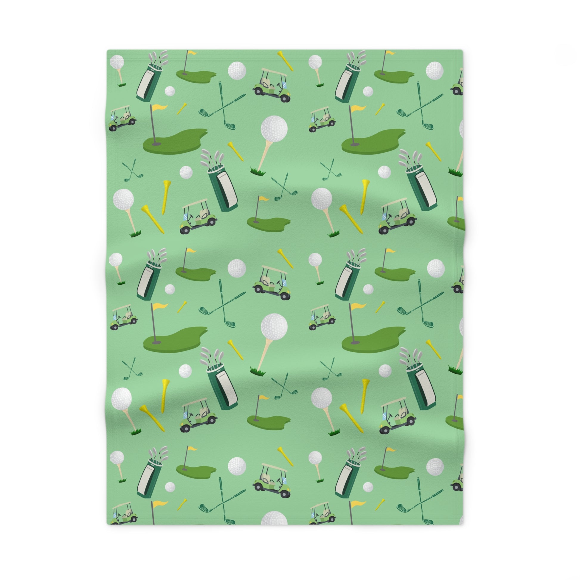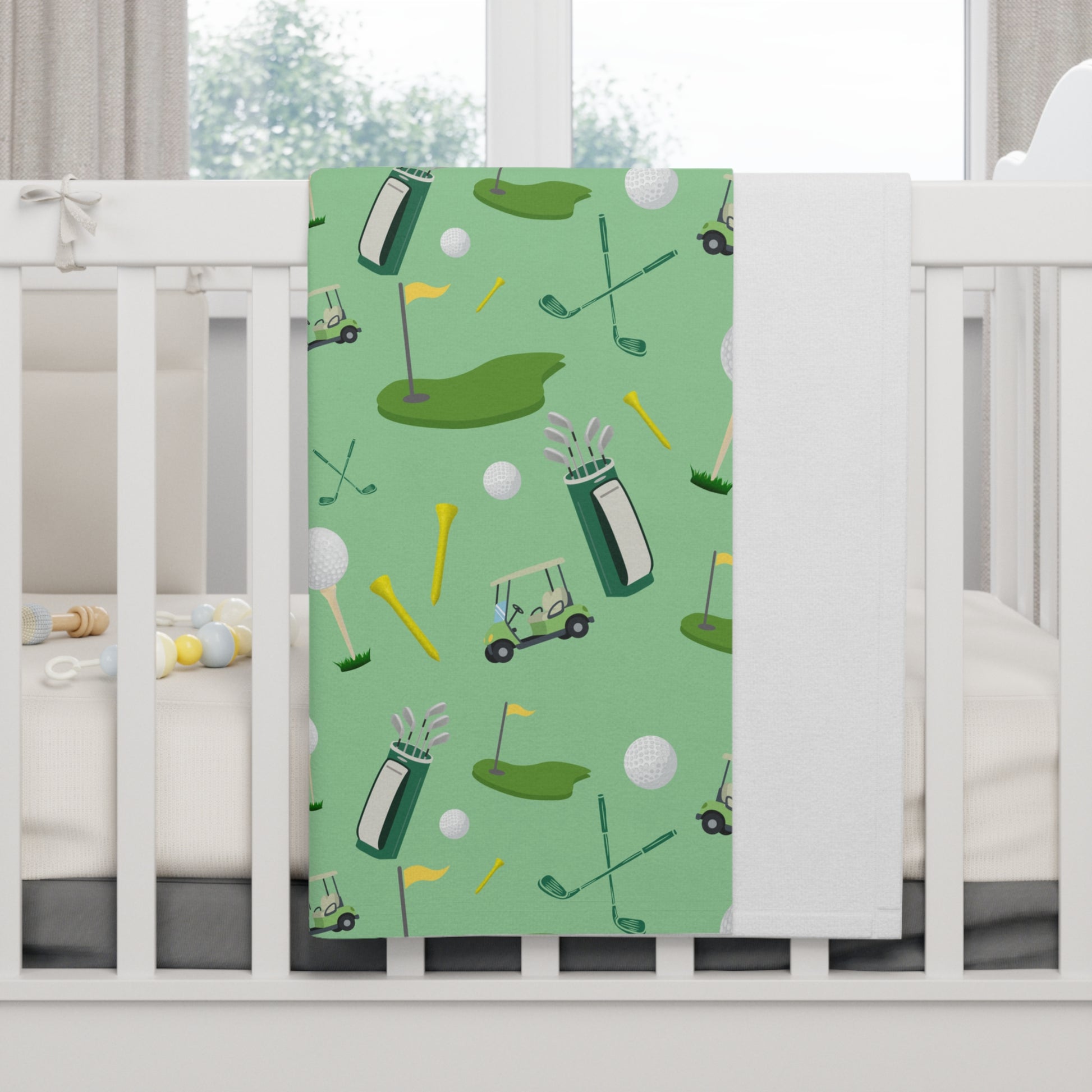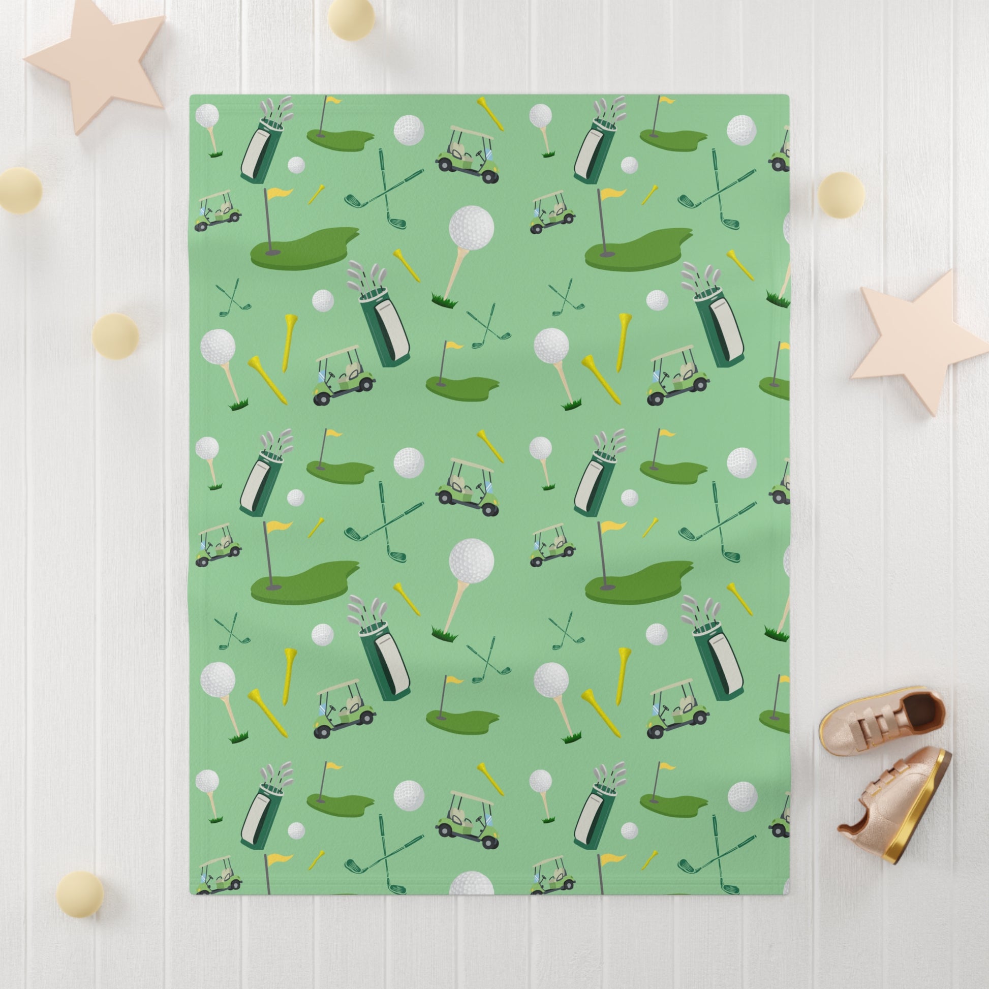 Golf Pattern Baby Blanket — Soft Fleece Nursery Throw with Golf Clubs, Tees & Carts