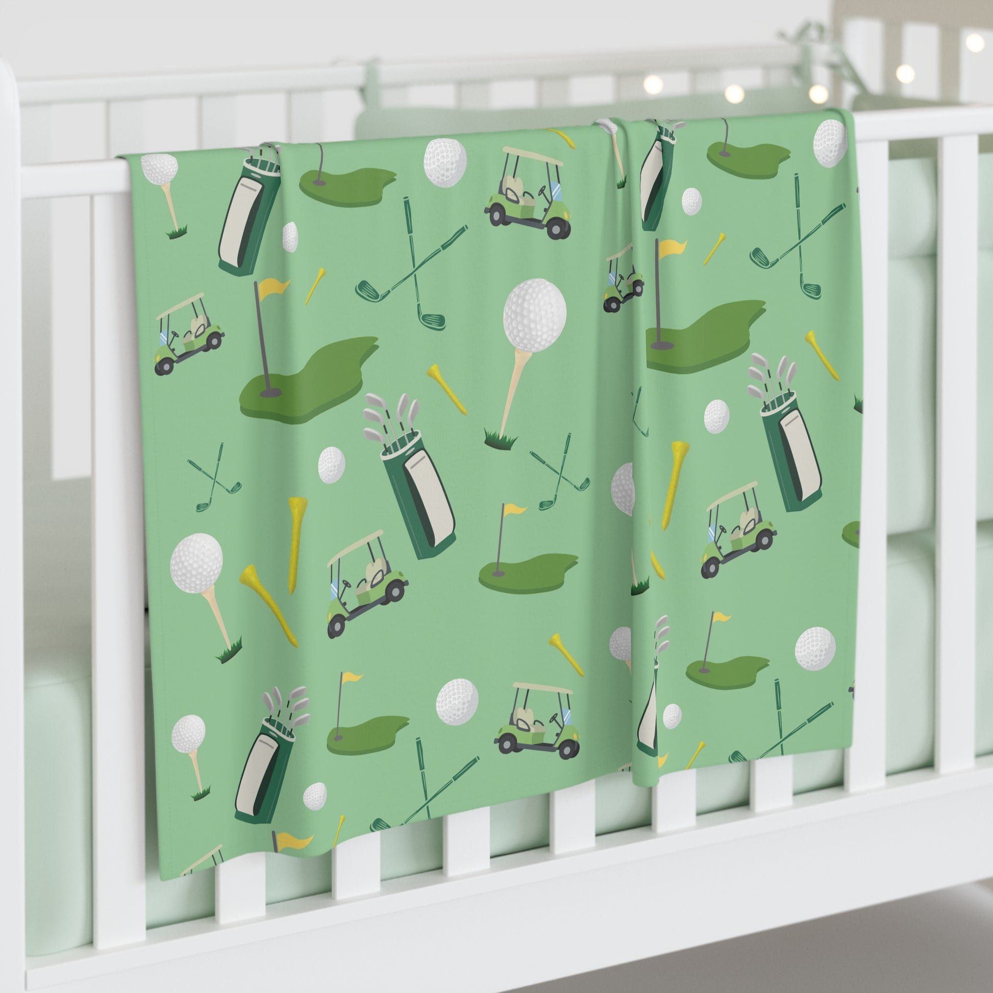 Golf Pattern Baby Swaddle Blanket — Green Golfing Nursery Swaddle