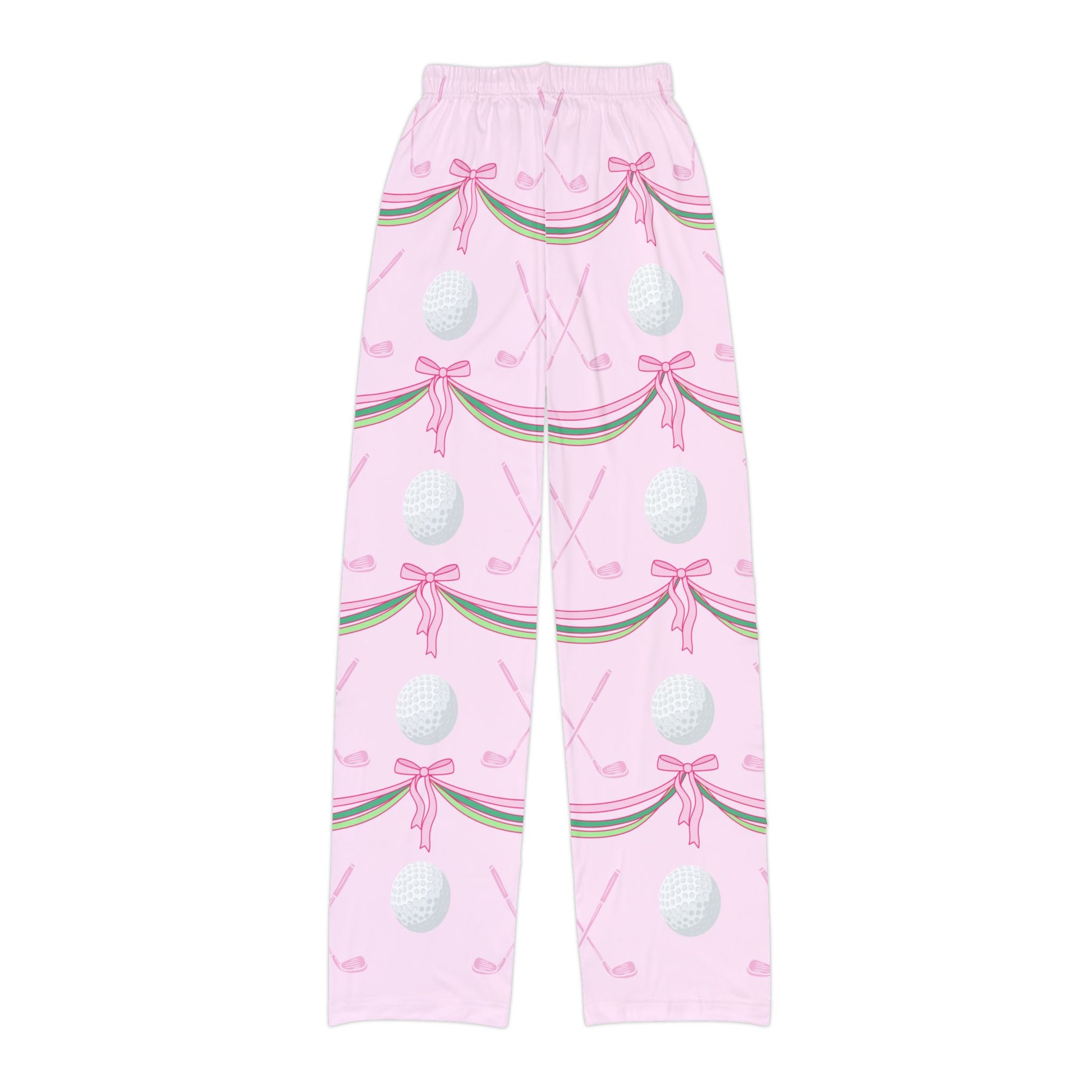 Pink Golf Lounge Pants for Kids — Cute Golf Ball & Bow All-Over Print